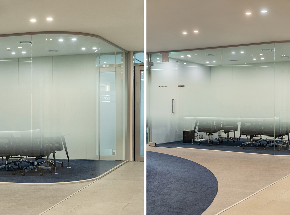 반면, 입구 왼쪽의 공간은 남아이피그룹의 현재와 미래를 표현한 현대적인 라운지로 구성하였다. 간결한 구성과 현대적인 감각은 전문성과 유연함, 그리고 변화 속에서도 앞으로 나아가려는 기업의 모습을 담아내며, 두 공간은 과거의 신뢰를 바탕으로 미래의 혁신으로 나아가는 남아이피그룹의 방향성을 보여준다.